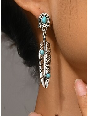 Женские серьги-подвески в стиле бохо из сплава с бирюзовыми листьями, винтажные серьги в стиле вестерн с перьями, идеально подходящие для повседневной носки, путешествий, отдыха и создания стильного образа на курорте.