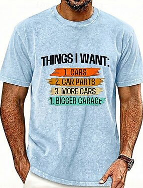 Забавная футболка в подарок автолюбителям: "Что я хочу: 1. Машины, 2. Автозапчасти, 3. Еще машины, 4. Больший гараж". Мужская футболка с коротким рукавом, графическим принтом, размеры: S, M, L, XL,