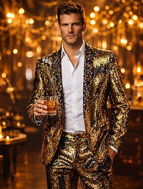 Дискотека В стиле 1980-х смокинг Фрак Большие размеры Длинные рукава Диско Пайетки Маскарадный костюм Муж. Карнавальный костюм Маскарад Для клуба Парад гордости Месяц гордости Взрослые Пальто