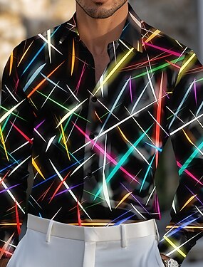 Муж. Геометрический принт Градиент цвета Лазерная линия Рубашка Атласная рубашка Длинный рукав Мода Повседневная Отпуск На каждый день Лето Весна Осень Отложной 3D печать Рубашки на пуговицах