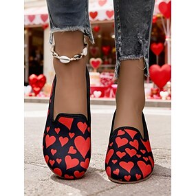 Женские черные туфли без застежек с принтом красного сердца – милая романтическая обувь для Дня святого Валентина, свиданий и повседневной носки