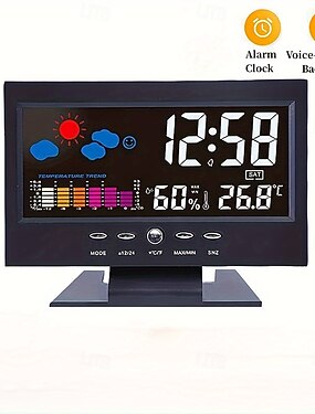 Интеллектуальные многофункциональные цифровые метеорологические часы с голосовым управлением, подсветкой, измерением температуры и влажности, прогнозом погоды, электронными часами и будильником.