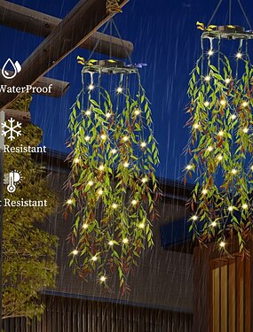 Солнечные садовые светодиодные светильники, искусственные подвесные светильники в виде бамбуковых листьев, имитация висячей лозы, искусственные бамбуковые листья, ивовые листья, подходят для сада,