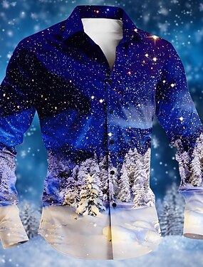 Новогодняя тематика Муж. дерево В снежинку Рубашка Кнопка рубашка Длинный рукав Мода Повседневная Вечерние наряды Повседневные Осень Зима Весна лето Рубашечный воротник Кнопка вверх 3D печать Синий