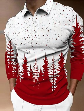 рождество мужская рождественская елка 3d поло гавайский гольф дерево графические принты отложной воротник желтый красный синий фиолетовый зеленый 3d принт уличный повседневный длинный рукав принт на