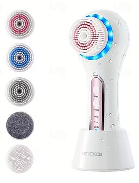 Подарки на День святого Валентина и День матери Перезаряжающаяся щетка для отшелушивания лица с 5 сменными насадками и 3 режимами (Нежный/Глубокий/Ежедневный) USB-зарядка с подставкой. Идеально.