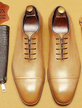 Муж. Классика Свадьба Кожа Итальянская цельнозерновая коровья кожа Против скольжения Дышащий Шнуровка Желтый-коричневыйM Винный Зеленый Весна Осень Все сезоны