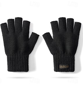 Муж. 1 пара Зимние Вязаные перчатки Перчатки без пальцев Спорт Мода Спорт и отдых Перчатки Сохраняет тепло Сплошной цвет Осень Черный Кахи Серый