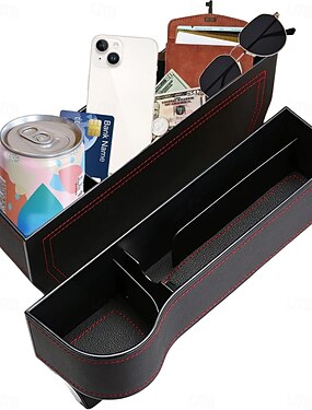 Комплект из 2 кожаных многофункциональных органайзеров для автомобильных сидений, заполняющих зазоры между сиденьями, с подстаканником. &Отделение/сумка для хранения – подходит для переднего сиденья,