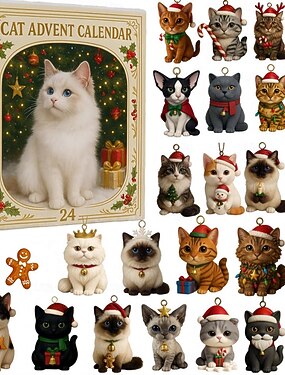 Адвент-календарь для любителей кошек 2025, адвент-календарь для кошек с 24 разными породами, рождественский календарь обратного отсчёта для владельцев кошек, украшение на ёлку, адвент-календарь для