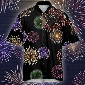 Новогодняя тематика Муж. Блестящий Рубашка Гавайская рубашка Кнопка рубашка С короткими рукавами На каждый день на открытом воздухе Отпуск Для вечеринок Лето Рубашки с воротником Кнопка вверх 3D