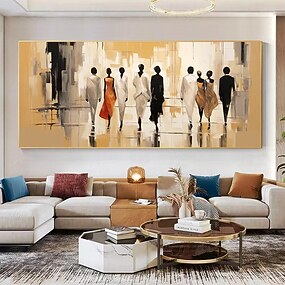ручная роспись абстрактные современные люди пейзаж картина маслом на холсте большая настенная живопись прогулка по улице картина минималистское произведение искусства для гостиной искусство домашнего