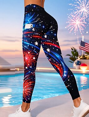День независимости Американский национальный день День независимости США Жен. Повседневные леггинсы Леггинсы для спортивного зала Базовый слой Нижний Карманы Гербовый сбор Пэчворк