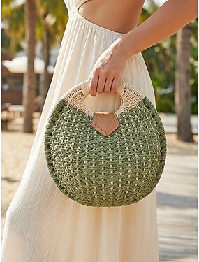 Круглая женская соломенная сумка, плетеная сумка-тоут разных цветов для пляжного отдыха, поездок на курорт, повседневных летних образов и повседневной одежды в стиле бохо.