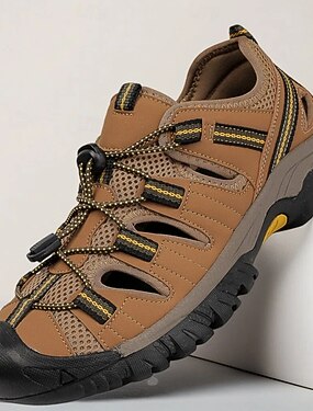 Мужские коричневые походные сандалии, регулируемая шнуровка, прочная подошва с хорошим сцеплением, функциональный стиль для походов, рыбалки и летнего использования.