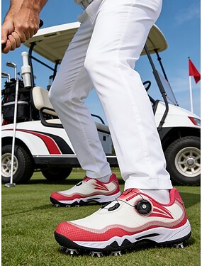 Мужские красно-белые туфли для гольфа с амортизацией, удобная обувь для игры в гольф и активного образа жизни.