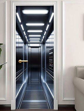 3D-наклейка на дверь лифта, реалистичная оптическая иллюзия интерьера лифта, самоклеящаяся водонепроницаемая виниловая пленка для современного домашнего офиса