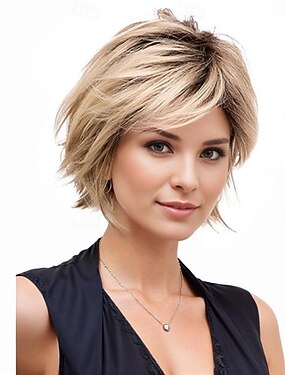 Женский короткий многослойный светлый парик боб с темными корнями – синтетические термостойкие волосы на каждый день, для косплея & вечеринка