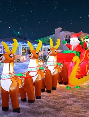 9 футов рождественские надувные украшения гигантский светящийся маяк с Санта Клаусом и оленями рождественские надувные изделия для зимнего праздника двора сада и наружного декора