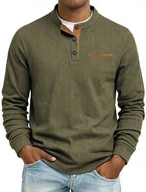 Муж. Футболка Длинный рукав Хенли Лето Весна Осень Полотняное плетение Современное На каждый день Удобный Пуговицы Классический Повседневные Дом Для улицы Черный Винный Светло-серый