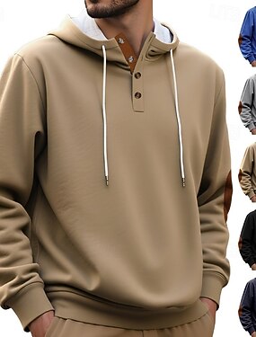 Муж. Толстовка Толстовка с капюшоном и пуловером Толстовка на пуговицах Черный Темно синий Тёмно-синий Хаки Светло-серый Капюшон Полотняное плетение Пэчворк Цветовые блоки