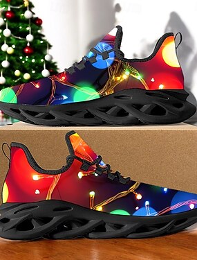 мужские праздничные рождественские кроссовки со светодиодной подсветкой – яркий праздничный дизайн с черной подошвой