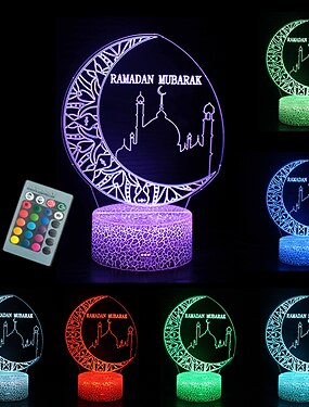 рамадан ид огни 3d мубарак исламская церковь 7 изменение цвета пульт дистанционного управления ночной свет декор мусульманская атмосфера лампа для спальни гостиная ид аль-фитр вечеринка свет друзья