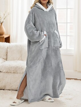 Жен. Пижамы Домашняя одежда Фланель Теплый Мода Носимая толстовка-одеяло Чистый цвет Карман Отпуск Дом Повседневные Длинный рукав Толстовка с капюшоном Светло-серый Осень Зима Свободное облегание