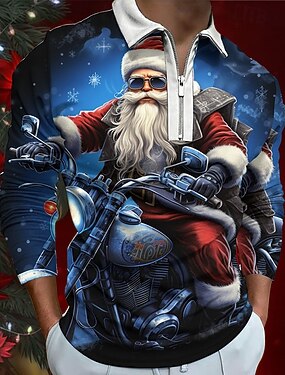 рождество мужское смешное рождество 3D молния поло Санта-Клаус повседневный принт 3D молния гольф открытый повседневный полиэстер длинный рукав отложной воротник рубашки на молнии черный темно-синий