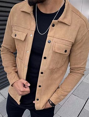 Муж. Легкая куртка Куртка-рубашка Повседневная куртка Шакет на открытом воздухе Для улицы Карман Пуговицы Весна & осень Наступила зима Полотняное плетение Уличный стиль Повседневные Отложной Обычная