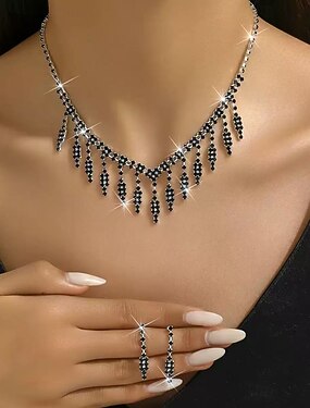 Элегантный женский комплект из черного хрустального ожерелья и серег – сверкающие украшения для торжественных мероприятий, свадеб и вечеринок