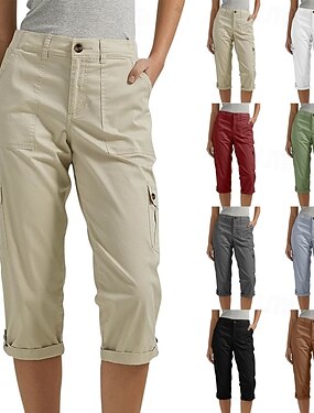 Жен. Брюки карго Брюки-капри Чино Отпуск Уличный стиль На каждый день До щиколотки Нормальная Полотняное плетение Карман Эластичный пояс удобный Комфорт Неэластичная