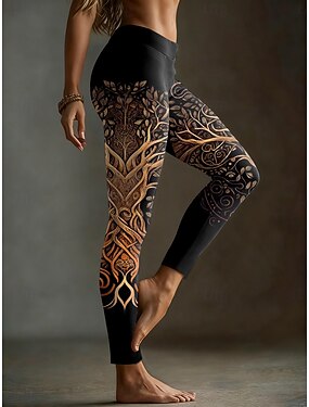 Жен. Леггинсы Винтаж Этнический стиль На каждый день Полная длина Завышенная Графика Абстракция 3D печать Быстровысыхающий Воздухопроницаемость Мягкий Эластичность