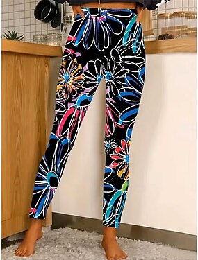 Жен. Бегун Брюки Прямой силуэт Уличный стиль На каждый день Полная длина Средняя талия Цветочный принт Эластичная талия Рисунок Мягкий Для улицы Праздники На каждый день
