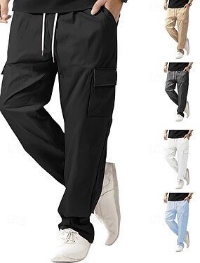 Муж. Брюки карго Брюки-карго Повседневные брюки Кулиска Мульти карман Однотонный Полная длина Повседневные Классический На каждый день Тонкие Черный Белый Нормальная Слабоэластичная
