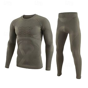 Муж. Базовый слой верх и низ Термобелье Set Однотонный Наборы одежды Наступила зима Военно-зеленный Катание на лыжах Пешеходный туризм Разрабатывать С защитой от ветра Теплый Длинный рукав Спорт