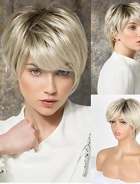 Короткие светлые парики с стрижкой пикси для белых женщин Светлые синтетические парики Натуральные многослойные парики с короткими волосами для ежедневных вечеринок и Хэллоуина…
