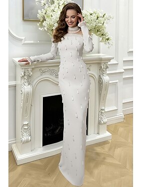 Платье-сукня колонка длиной до колена для вечеринки коктейльное платье вечернее платье элегантное с длинным рукавом и круглым вырезом для вечеринок свадеб с кристаллами и вышивкой