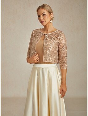 Жен. Куртка Для вечеринок Кружева Цветочный принт На каждый день Элегантный стиль Стандартный Верхняя одежда Рукав 3/4 Лето Цвет шампанского S