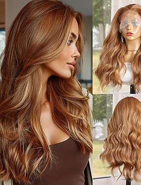 Синтетический парик шнурка Естественные кудри Стиль 18 дюймовый Оранжевый Средняя часть 13x4 Кружева Фронт Парик Жен. Парик Средне-каштановый # 30