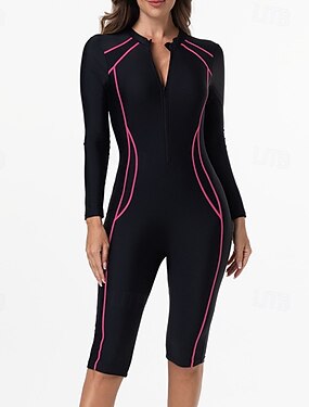 Жен. Рашгард Купальный костюм Один Пис Пэчворк Застегнуться УФ-защита Эластичность Длинный рукав Купальники Серфинг Дайвинг Для погружения с трубкой Лето