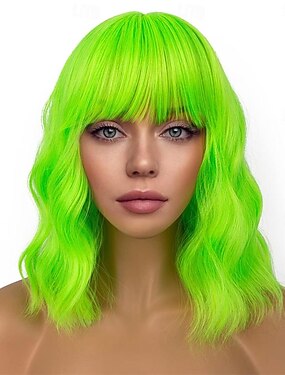 Парики из искусственных волос Волнистый Свободный локон Средняя часть Аккуратная челка Парик 12 дюймы Красный зеленый Искусственные волосы 12 дюймовый Жен. Мягкость Зеленый