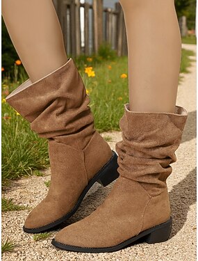 Женские коричневые сапоги из искусственной замши с низким каблуком, удобные, длиной до середины голени, для повседневных нарядов осенью и зимой