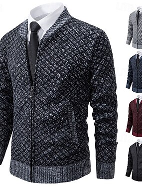 Муж. Вязаная ткань Платье-свитер Кардиган Свитер на молнии Вязаный свитер Рельефный узор Вязать Обычные топы Трикотаж Рельефный узор Полотняное плетение Вырез под горло Мода Шали Бизнес Повседневные