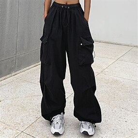 женские брюки-карго с парашютом, широкие брюки, мешковатые длинные брюки, мешковатые микроэластичные брюки с высокой талией, модные повседневные повседневные армейско-зеленые, черные, s m, весна&