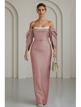 Футляр В пол Вечернее платье Выпускные платья Вечернее платье С пышной юбкой Торжественное платье Элегантный стиль Стиль знаменитостей С короткими рукавами С открытыми плечами Свадьба Официальные с