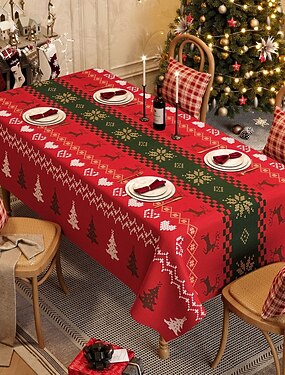Рождественская скатерть из нетканого материала красного цвета для праздничного обеденного стола для дома, праздничное рождественское украшение, идеальный сезонный акцент для вечеринки, уютный домашний