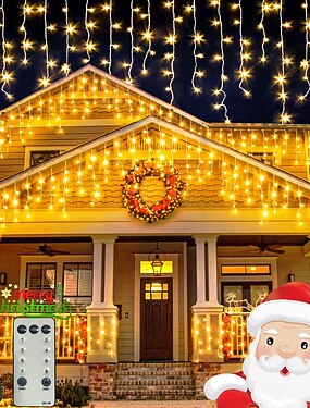 Рождественская сосулька, 33 фута, 400 светодиодов, 48 капель, 8 функций, таймер, дистанционное управление, прозрачный провод, подключаемые гирлянды, праздничные, свадебные, вечерние, декоративные огни, низкое напряжение, безопасная розетка