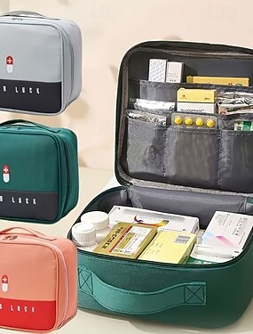 2 вместительных контейнера для хранения медикаментов, портативный органайзер для аптечки с застежкой-молнией и множеством отделений, идеально подходит для дома, путешествий, отдыха на природе и