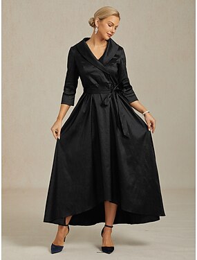 Жен. Длинное платье Платье для вечеринки Элегантный стиль Винтаж Стандартный Сплошной цвет Рукав 3/4 V-образный вырез Черный Осень Зима